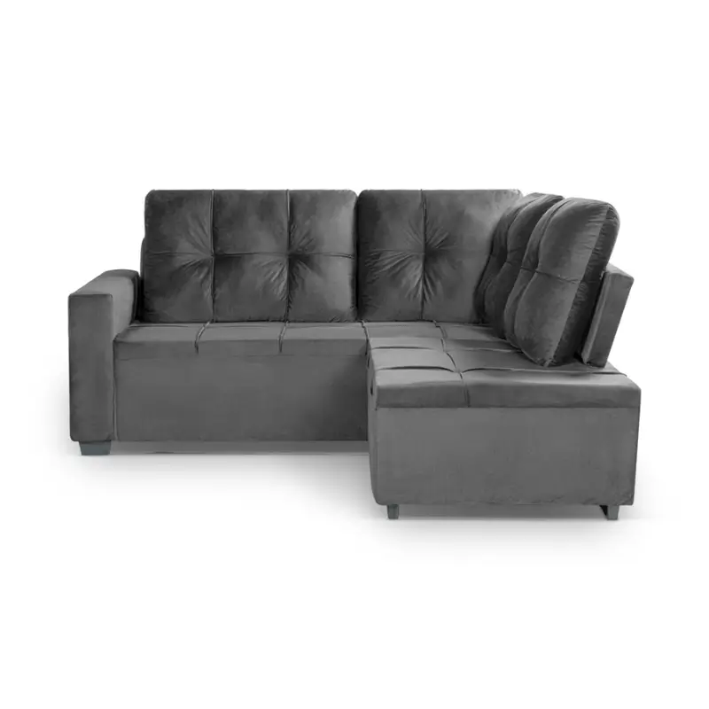 Dale un toque moderno y elegante a tu hogar con este living esquinero Oklahoma Platinum en color grafito, ideal para crear un ambiente cómodo y sofisticado.