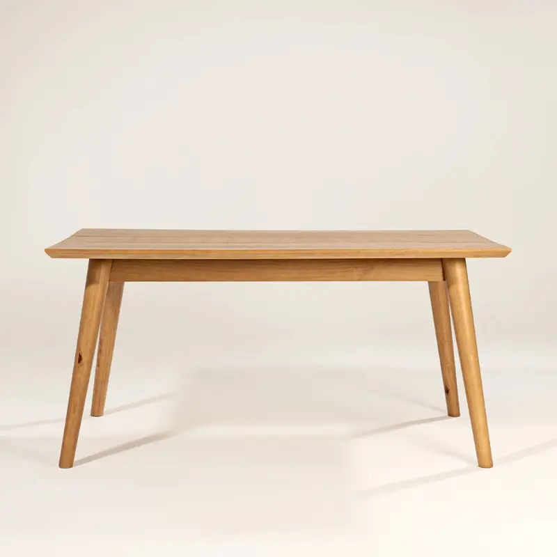 Realizada íntegramente en madera maciza, con acabado en barniz que protege la superficie, realza la veta natural de la madera y facilita su limpieza y mantenimiento.